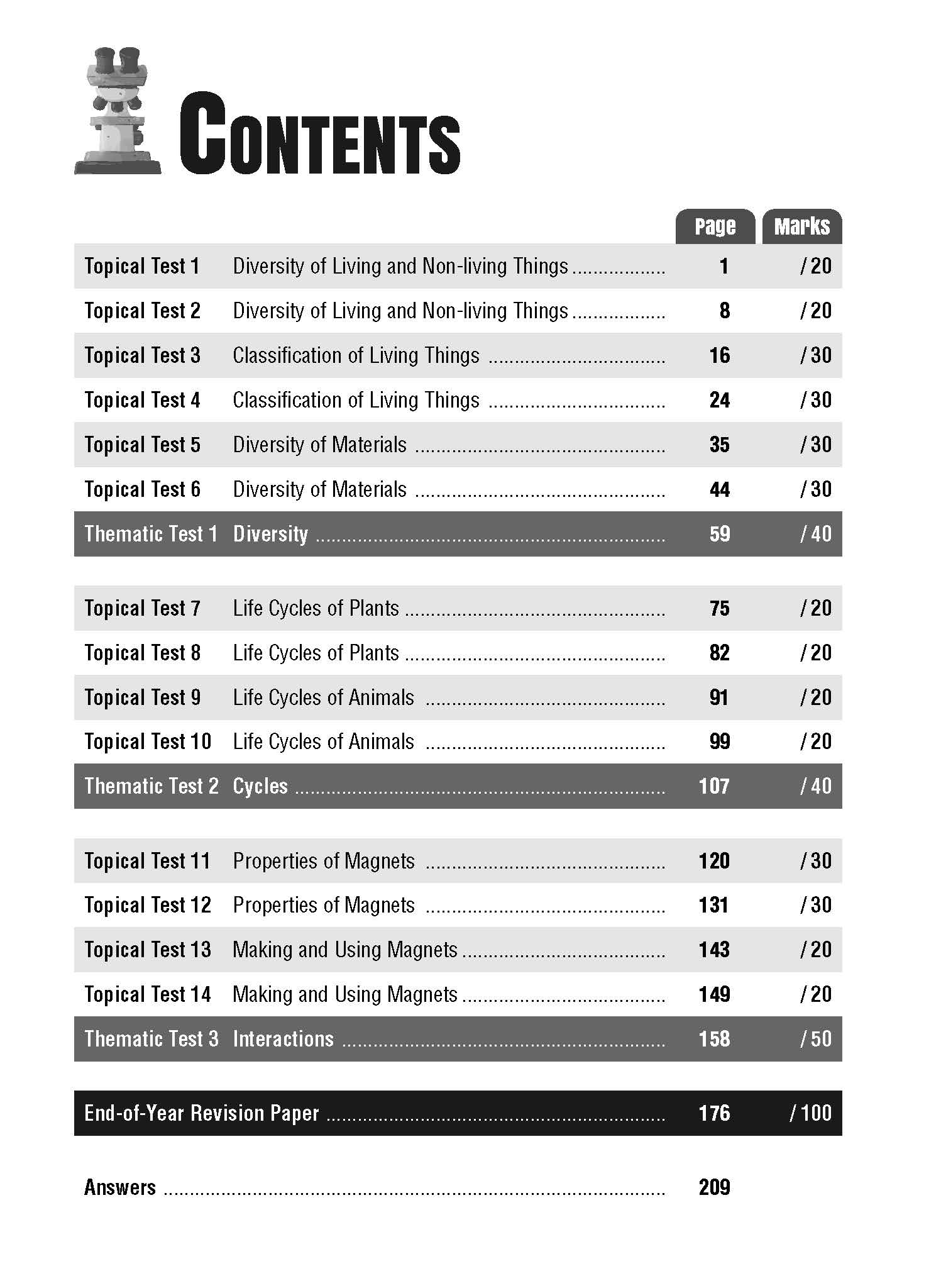 Science Topical and Thematic Tests is a series writtenin line with the latest 2023 Primary Science syllabus.Each book consists of topical tests, thematic tests andan End-of-Year revision paper.This series provides ample tests for pupils to applywhat they have learnt in school and therefore preparespupils for their schools’ weighted assessments andexaminations.