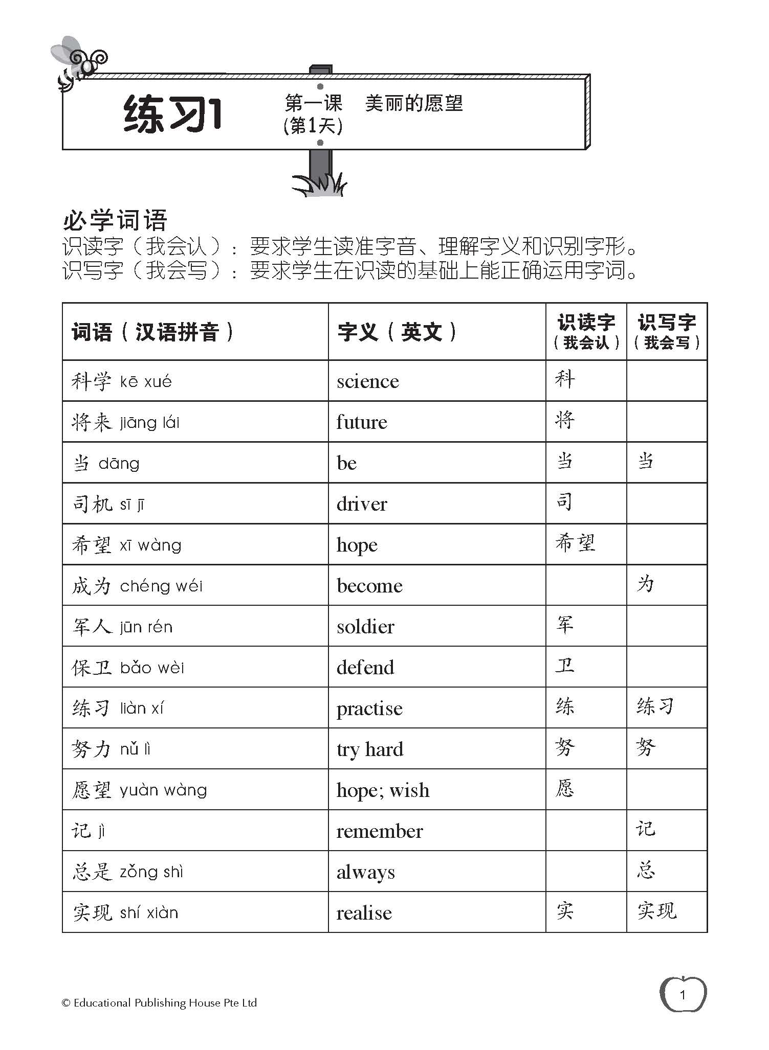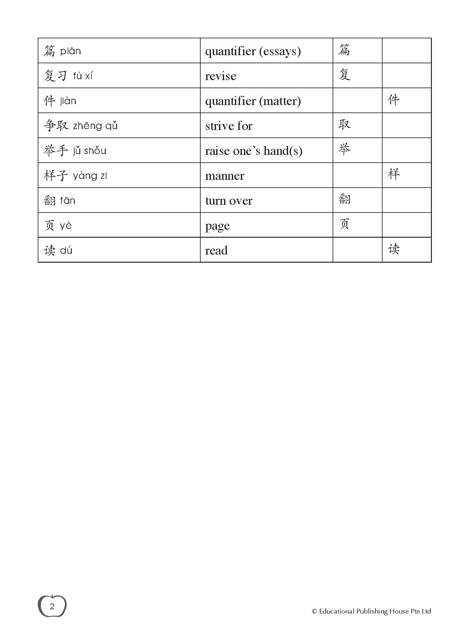 Primary Chinese Daily Intensive Practice is written based on the latest P3 Chinese textbook and curriculum guidelines, making it ideal for P3 pupils. The book is aligned with the school teaching progress. By providing pupils with one practice a day, this title aims to promote progressive learning. The practices are also aligned with the MOE’s latest assessment guidelines, helping pupils improve their Chinese grades quickly.