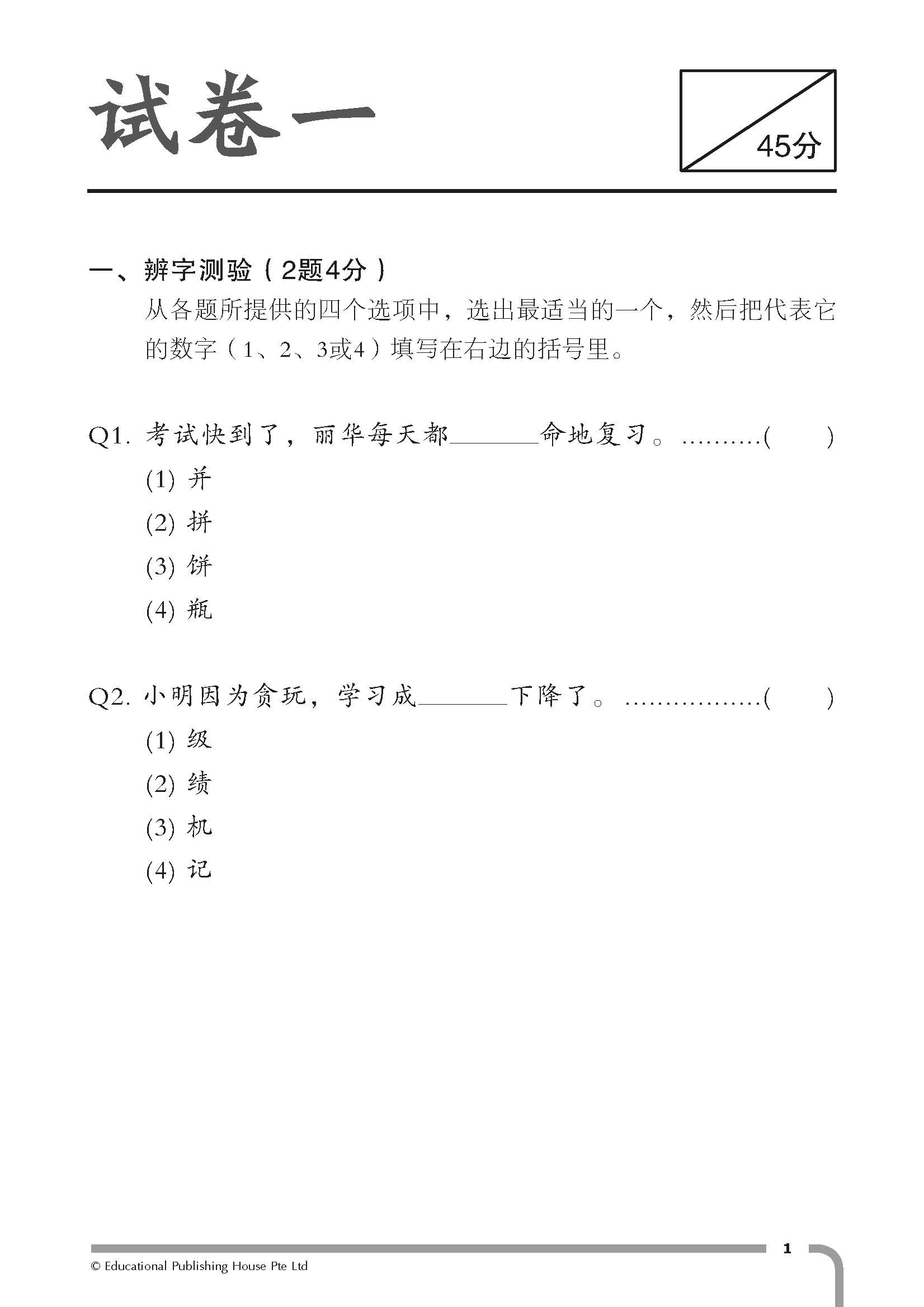 卷,题目水平与新加坡优秀小学的试卷水平相当。试卷程度具